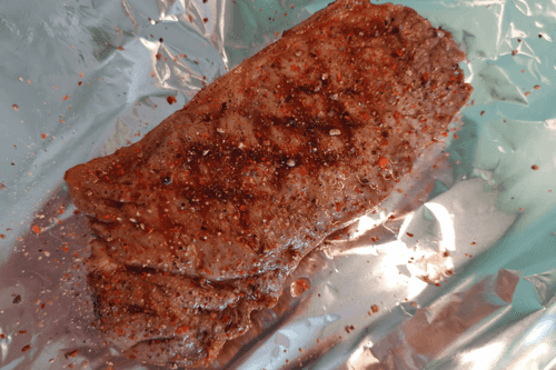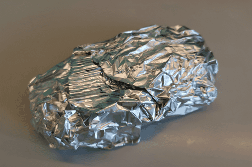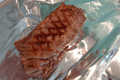 Выложить в фольгу стейк.