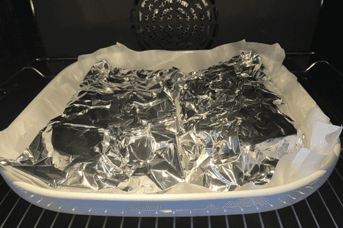 Поставить в духовку еще на 10 минут. Доставить из духовки и украсить для подачи соусом песто и петрушкой.