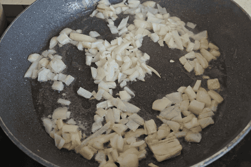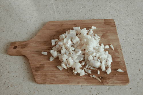 Вторую луковицу нарезать мелкими кубиками.