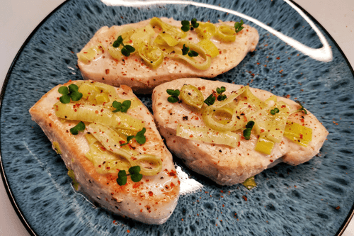 Филе индейки в кокосовом молоке — изысканное блюдо паназиатской кухни, сочетающее нежность мяса и экзотический вкус. Истоки этого рецепта лежат в традициях восточных кулинаров, где кокосовое молоко используется для придания мягкости и глубины вкуса. Легкая сладость кокоса гармонично дополняет нежное филе индейки, а ароматный чеснок и смесь перцев придают пикантность. Лук-порей добавляет легкую карамельную нотку, создавая богатую палитру вкусов. Это блюдо идеально подходит для особых ужинов и встреч с друзьями, сочетаясь с рисом или овощами. Оно удивляет своей простотой приготовления, но раскрывает сложный гастрономический опыт, удовлетворяющий даже самых требовательных гурманов.