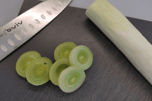 Нарезать порей слайсами.