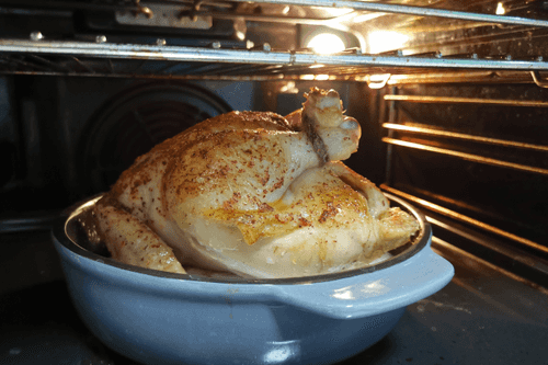 В разогретую до 180 градусов духовку отправить курицу на 25 минут.
