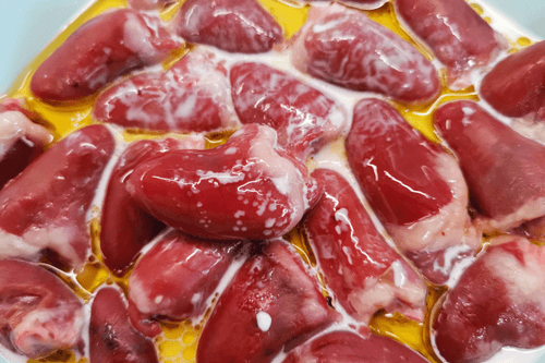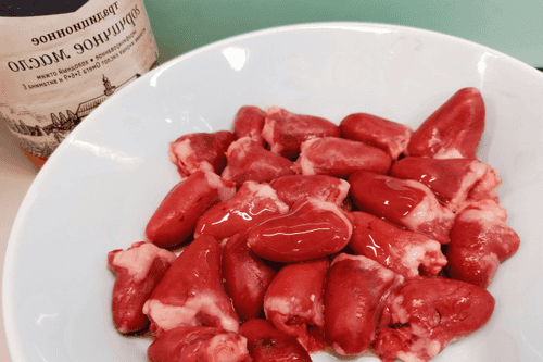 Сердечки промыть, обрезать сосуды и лишний жир.