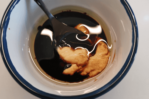 Добавить соевый соус и горчицу.