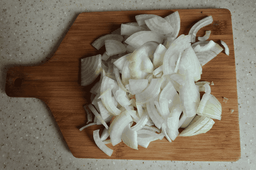 Лук нашинковать полукольцами.