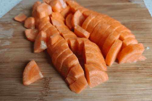 Морковь нарезать треугольниками и добавить к луку.