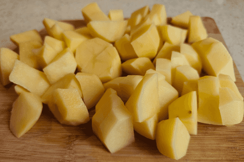 Картофель очистить и нарезать на небольшие кубики.