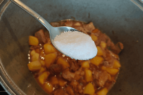 В казан сложить картофель, влить воду и посолить. Накрыть крышкой и оставить томиться на медленном огне 20 минут.