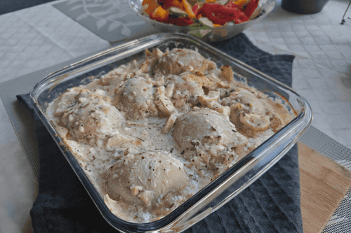 Куриные бедра с кабачками и чесноком — это сочное и нежное блюдо русской кухни, вобравшее в себя традиционные вкусы. Идея запекать куриное мясо с овощами и сливками идет от исконных русских деревенских рецептов, когда хозяйки стремились сохранить максимум аромата и мягкости мяса. Чеснок придает блюду пикантность, а кабачки добавляют свежую сладость, контрастируя с насыщенным сливочным соусом, ароматизированным прованскими травами. Запекание в духовке делает куриные рулетики особенно мягкими, а сливочная смесь пропитывает их, создавая гармоничный вкус. Блюдо идеально подходит для уютного семейного ужина или праздничного стола, где оно не только украсит трапезу, но и подарит ощущение теплоты домашней кухни.