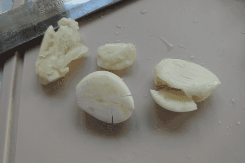 Очистить чеснок. Оставить 3 зубчика.