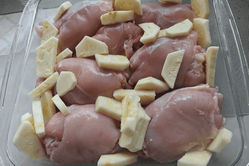 Куриные бедра с кабачками и чесноком