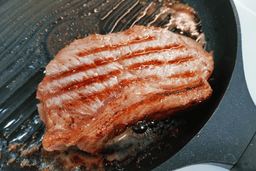 Стейк стриплойн на сковороде гриль