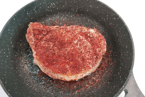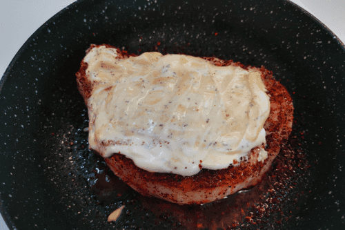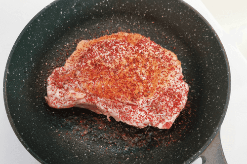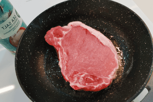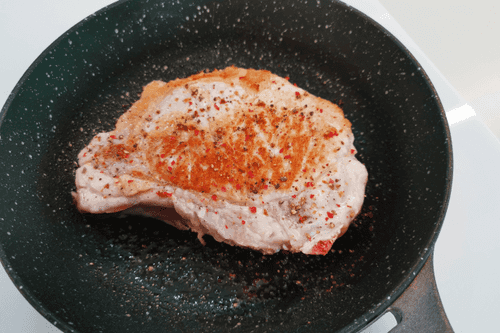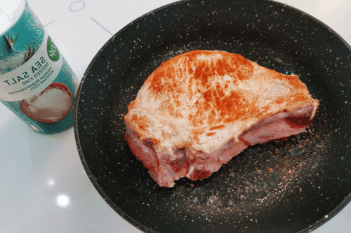 Корейку перевернуть и посолить. Обжаривать 3–4 минуты.