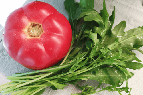 На блюдо выложить подготовленные овощи. Выложить готовую корейку и подавать. Можно добавить еще немного перца по вкусу.
