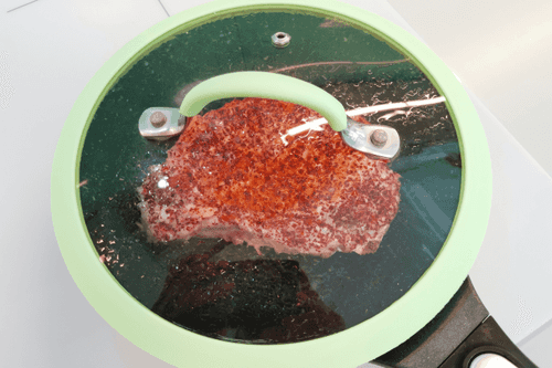 Перевернуть и добавить смесь перцев и оставшийся сумах.