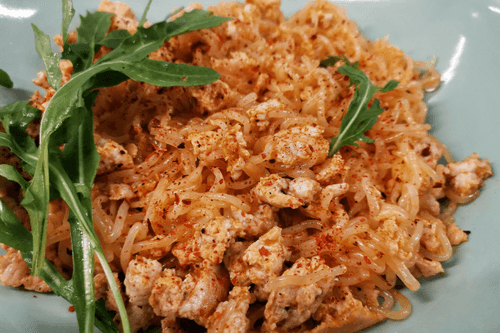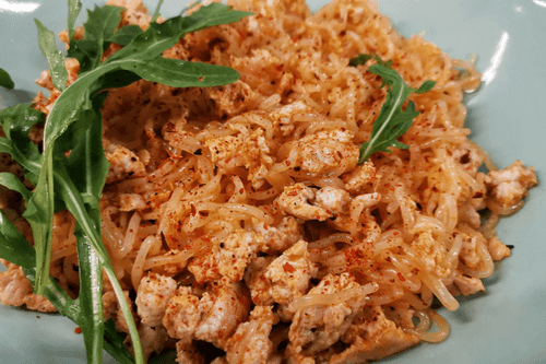 Кето-макароны по-флотски с курицей — это современная интерпретация классического русского блюда, адаптированная для низкоуглеводного питания. Вместо традиционных макарон используются ширатаки, которые придают легкость и воздушность, идеально сочетаясь с сочным куриным фаршем, обжаренным в ароматном оливковом масле. Смесь перцев и морская соль раскрывают вкус мяса, а томатная паста добавляет аппетитную кислинку. Украшенная свежей руколой, эта версия макарон по-флотски становится не просто сытным, но и элегантным блюдом, которое можно подать как на семейном ужине, так и на праздничном столе. Оно идеально для тех, кто следит за фигурой, но не хочет жертвовать насыщенным вкусом традиционной кухни.