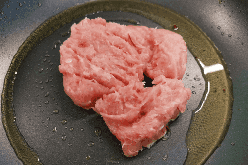 В разогретое на сковороде масло выложить фарш.