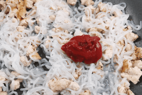 Добавить томатную пасту. Тщательно перемешать и обжаривать ещё 3 минуты.