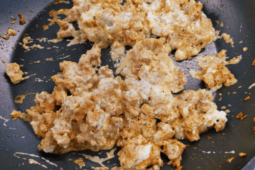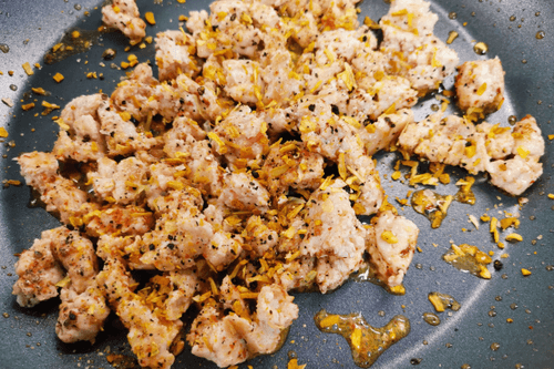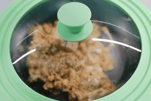 Через 2–3 минуты перемешать и убавить огонь до среднего.