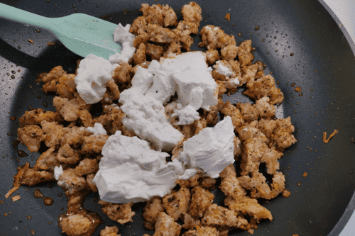 Добавить сливки и перемешать.