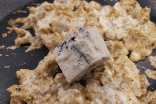 Через пару минут добавить сыр дорблю.