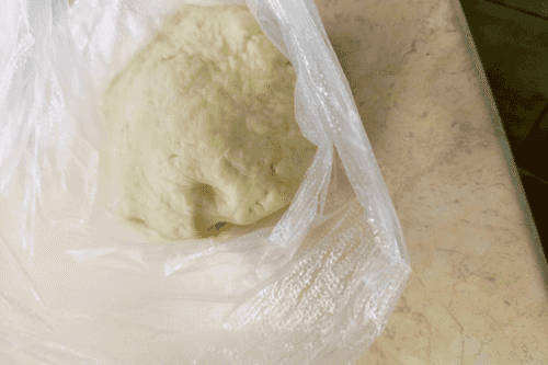 Убрать тесто в пакет на 30–40 минут. За это время оно станет эластичным.