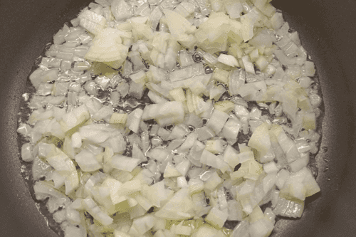 Лук очистить, мелко нарезать, обжарить на растительном масле до золотистого цвета.