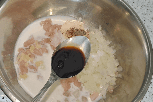 Добавить к содержимому 1 столовую ложку соевого соуса.