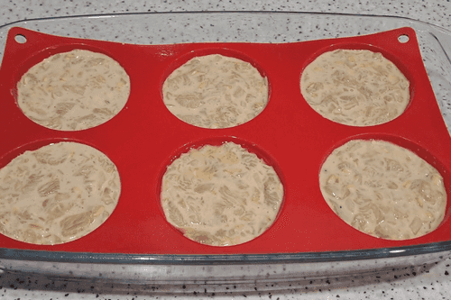 Силиконовую форму для порционной выпечки смазать небольшим количеством растительного масла.