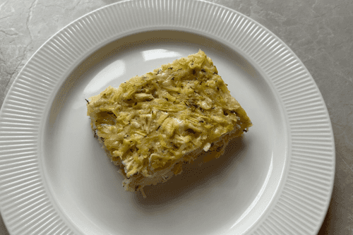 Кабачковый пирог — это нежное и ароматное блюдо русской кухни, покоряющее сердца своей простотой и насыщенным вкусом. Истоки этого пирога берут начало в деревенской кулинарии, где кабачки широко использовались благодаря их доступности и универсальности. Легкая текстура кабачков прекрасно сочетается с нежным куриным мясом, сливочным сыром и ароматным укропом, создавая гармоничный вкус с едва уловимой сладостью. Картофель придает сытность, а золотистая корочка, образовавшаяся при запекании, делает блюдо особенно аппетитным. Этот пирог можно подать как самостоятельное блюдо на семейный ужин или использовать в качестве закуски на праздничном столе. Он хорош и теплым, и холодным, сохраняя свою сочность и насыщенность вкуса.