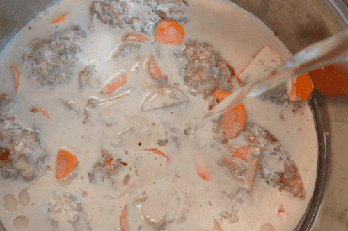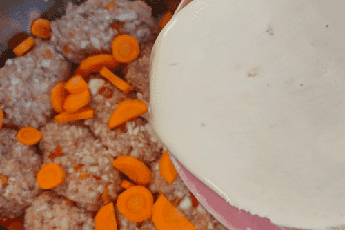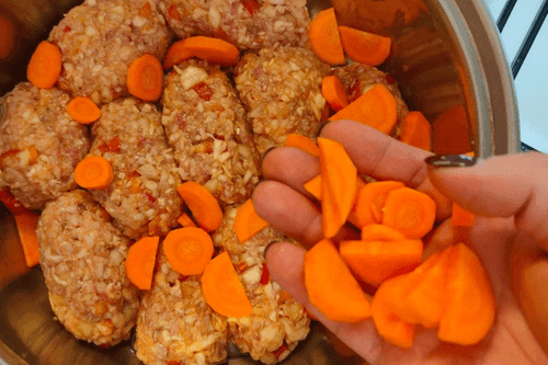 Нарезать морковь произвольно и добавить в кастрюлю с голубцами.