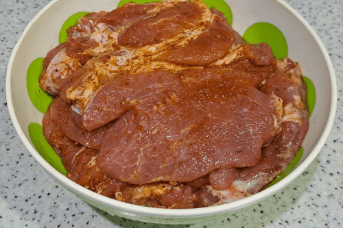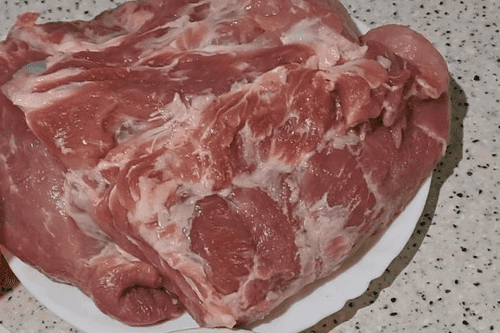 Подготовить необходимые ингредиенты. Для этого рецепта лучше взять свиной ошеек.
