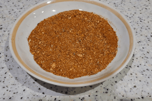 В отдельной емкости смешать соль, молотую паприку, смесь молотых перцев, молотый сушеный чеснок и молотый черный перец.