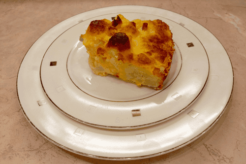 Оставшийся сыр смешать со сливками и распределить по всей поверхности запеканки.