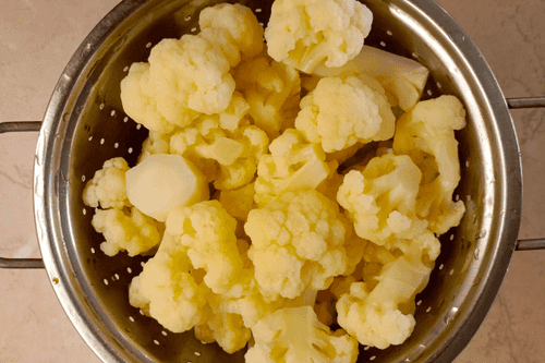 Цветную капусту разделить на соцветия и промыть. Кочерыжку очистить.
