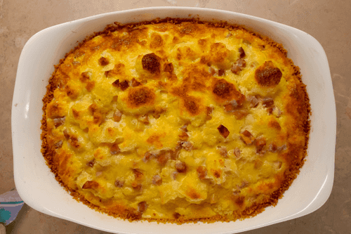 Запеканка из цветной капусты с ветчиной — нежное и ароматное блюдо французской кухни, олицетворяющее изысканный вкус и простоту приготовления. Легкие сливочные нотки, соединенные с мягкостью цветной капусты и пикантностью ветчины, создают гармонию, которая радует гурманов. Запеканка идеально подходит как самостоятельное блюдо, так и как дополнение к мясным угощениям. Ее насыщенный вкус раскрывается благодаря мускатному ореху и белому перцу, а расплавленный эмменталь придает ей аппетитную корочку. Блюдо удачно сочетает нежность овощей с насыщенностью сливочного соуса, делая его популярным на семейных ужинах и праздничных застольях. Французские кулинары часто используют этот рецепт как основу для других вариаций, добавляя различные сыры и мясные ингредиенты, что делает запеканку универсальной и любимой во всем мире.