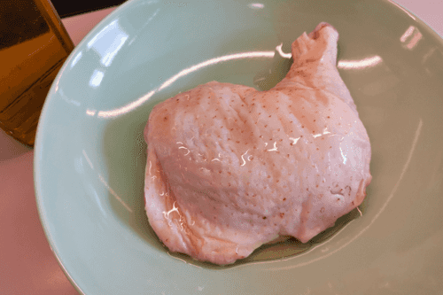 Вылить на окорочок 1 столовую ложку масла.