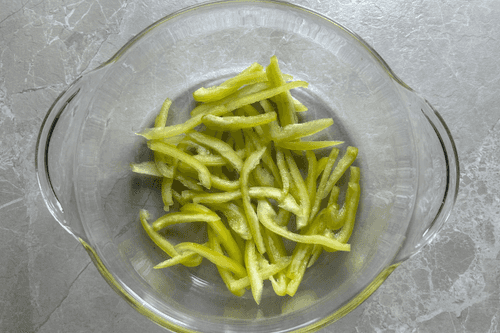 Нарезать болгарский перец.