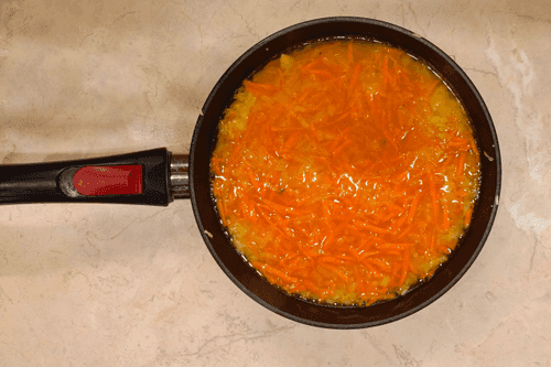 Добавить морковь, обжаривать еще 2–3 минуты.