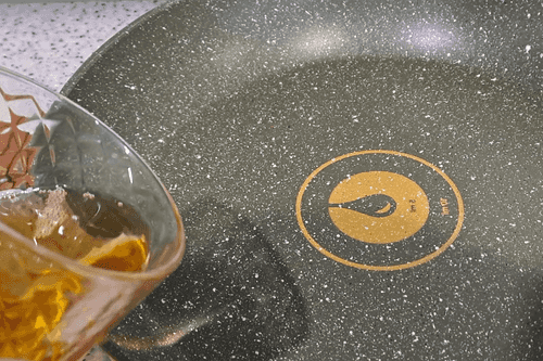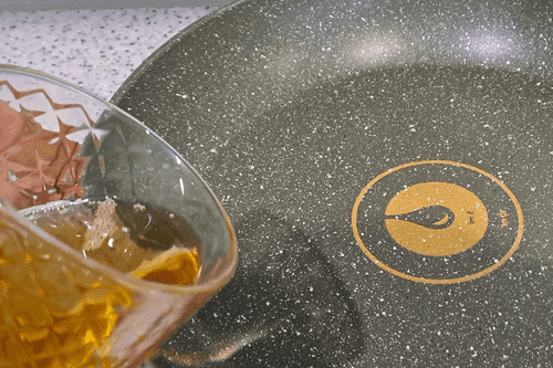 На вторую сковороду влить примерно 50–60 мл подсолнечного масла.