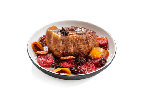 Свинина со сливами — изысканное блюдо паназиатской кухни, сочетающее в себе сладость фруктов, пряность специй и нежность мясного вкуса. Истоки этого рецепта уходят в традиции восточной гастрономии, где мясо часто готовят с фруктами, создавая сложные, насыщенные вкусовые сочетания. Аромат аниса, корицы и имбиря наполняет блюдо теплотой и глубиной, а рисовое вино и соевый соус придают ему изысканный баланс сладкого и солёного. Длительное запекание делает свинину невероятно мягкой, а добавленные в финале сливы пропитывают мясо насыщенным фруктовым соком, придавая ему лёгкую кислинку. Подавать это блюдо стоит в глубокой тарелке, щедро полив ароматным соусом — идеальное угощение для праздничного ужина или уютного семейного вечера.