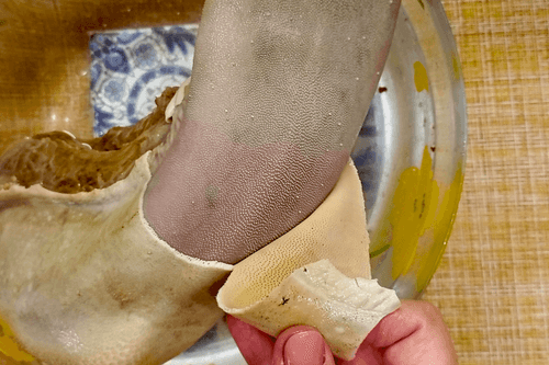 Очищенный язык вернуть на 15 минут в бульон, прогреть, а затем убрать в пакет или контейнер для остывания.