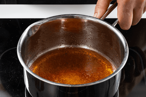 В отдельном сотейнике смешать растительное масло и красный молотый перец и прогревать 2 минуты.