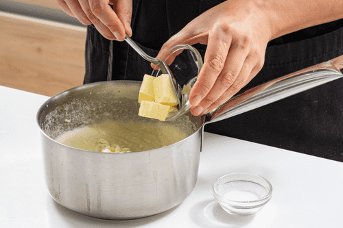 Посолить и добавить кусочек холодного сливочного масла. Отставить в сторону.
