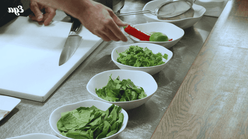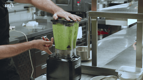 Добавить базилик и шпинат и еще раз быстро пробить.