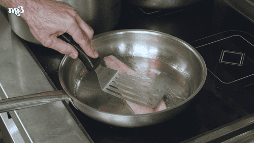 Жарить на среднем огне несколько минут, пока филе не начнет белеть по краям, но в середине останется еще сыроватым. Перевернуть рыбу, снять сковороду с огня и подержать рыбу на горячей сковороде около 30 секунд, а затем выложить на бумажное полотенце.