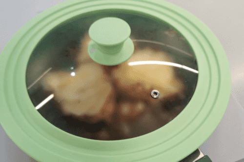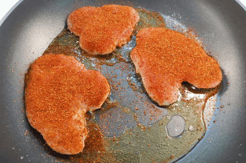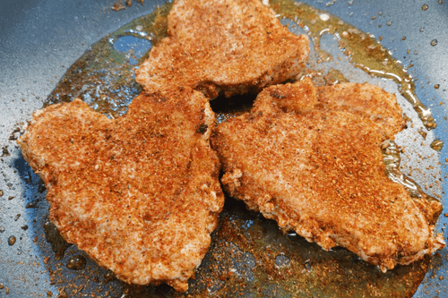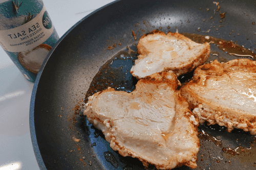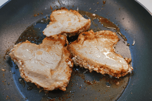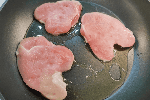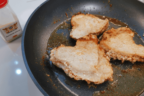 Выложить индейку на сковороду. Обжаривать на сильном огне 2–3 минуты.