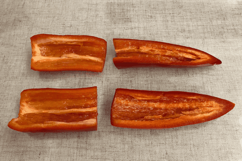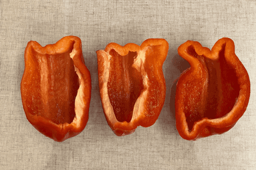 Сладкий перец помыть, разрезать и удалить семечки.