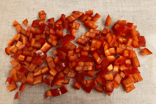 Сладкий перец нарезать маленькими кусочками.