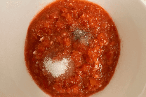 Томаты помыть и помять, добавить перцы и чеснок.